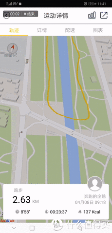 App的数据监测功能还是比较完善的,一次运动的记录可以从轨迹、详情、配速和图表四个层面来分析,提供的数据也是很完整丰富的。不过比较遗憾的是轨迹的勾勒存在偏移现象,从轨迹中看我有两次过桥都成了蹚水而过。