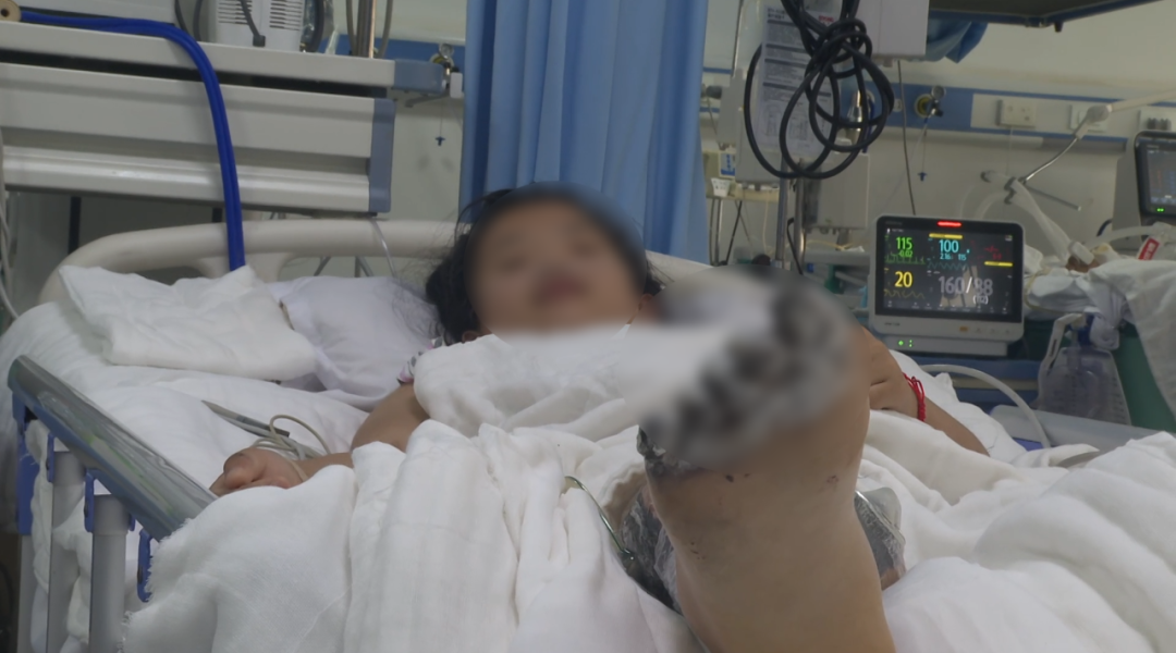 2023年6月,辽宁沈阳,一名17岁的女孩在使用手机时,不慎被手机电流击穿,胸部上方靠近肩膀处需要植皮,双脚脚趾截肢。