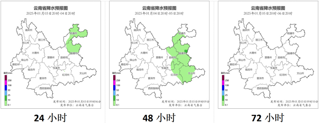 1月3日20时到1月4日20时:昭通市、曲靖市北部阴局部有小雨,其他地区多云间晴。