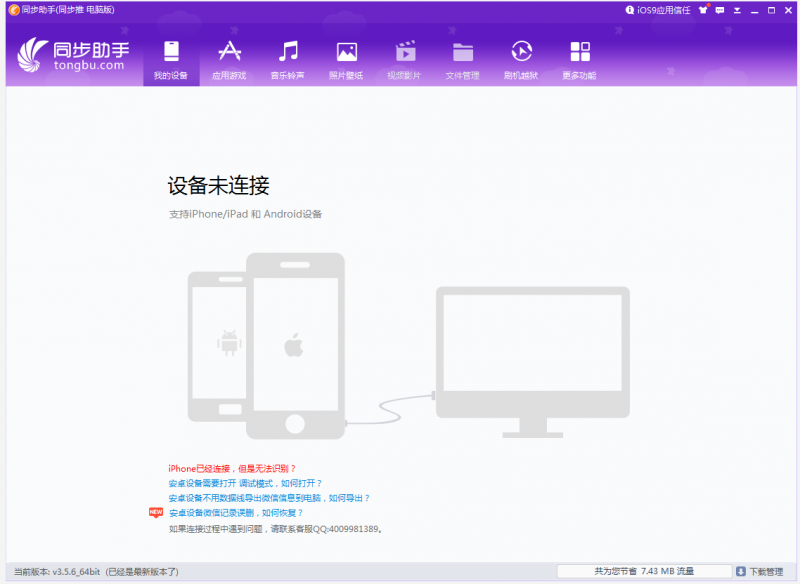 同步推同步助手是一款针对苹果手机打造的一款用于在PC电脑上管理苹果手机(也支持安卓)的手机管理软件,可以帮助用户进行短信/联系人/音乐/图片导出,白苹果修复等功能,苹果用户无需越狱,让你轻松管理手机,如果你需要在电脑中管理手机的话快来试试kkx分享的这款同步助手绿色版64位吧! 支持对本地音乐类型分析,健康度分析