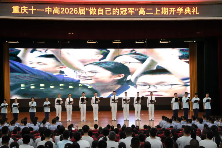 为弘扬并汲取奥运精神的力量,9月9日,重庆市第十一中学高2026届高二上期“做自己的冠军”开学典礼在学校崇德武术队的精彩表演中拉开序幕。